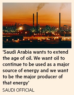 However, the Saudi official said he expected the kingdom to maintain its dominance of global energy, despite the growth of alternatives to fossil fuels and competition from rival oil producers within Opec and beyond. “Saudi Arabia wants to extend the age of oil,” he said. “We want oil to continue to be used as a major source of energy and we want to be the major producer of that energy.”